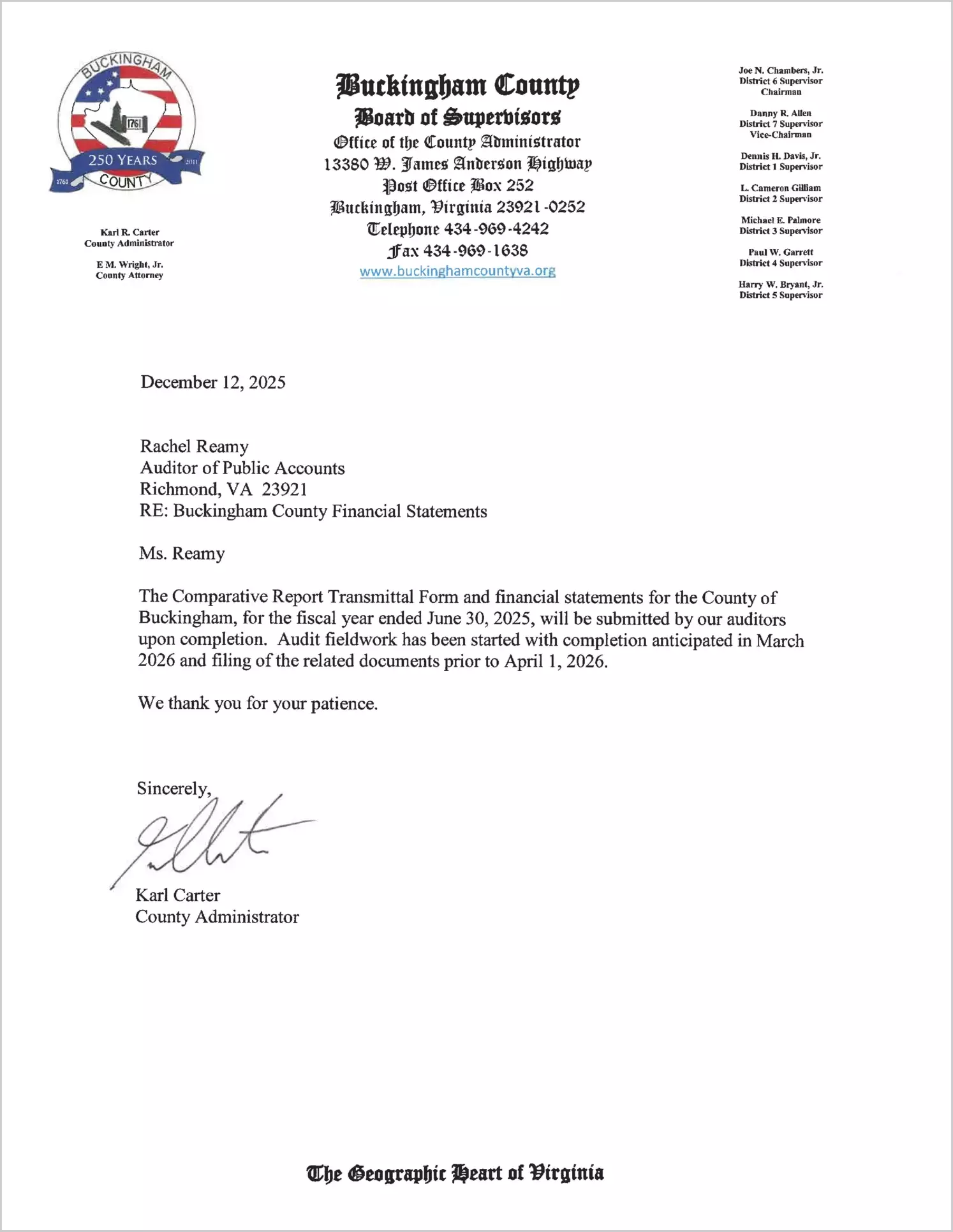 2025 Annual Financial Report for County of Buckingham - Delayed