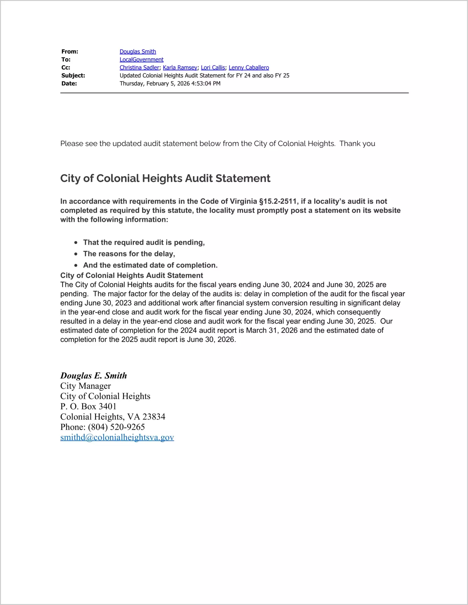 2025 Annual Financial Report for City of Colonial Heights - Delayed