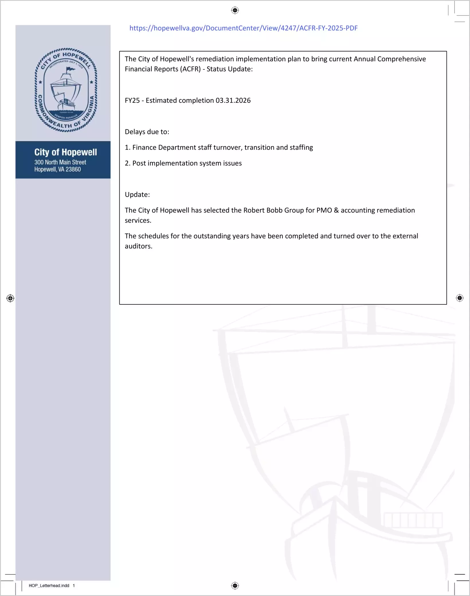 2025 Annual Financial Report for City of Hopewell - Delayed