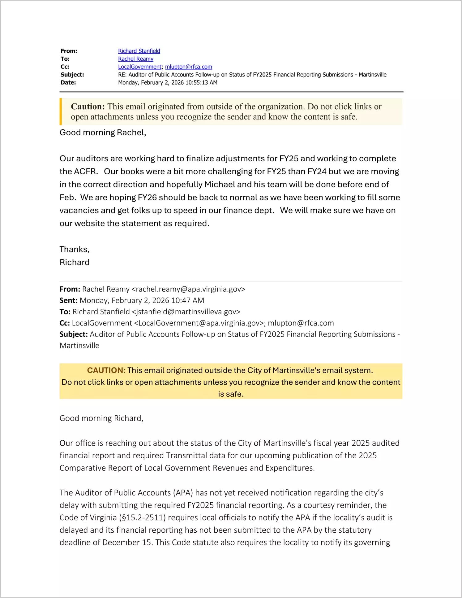 2025 Annual Financial Report for City of Martinsville - Delayed