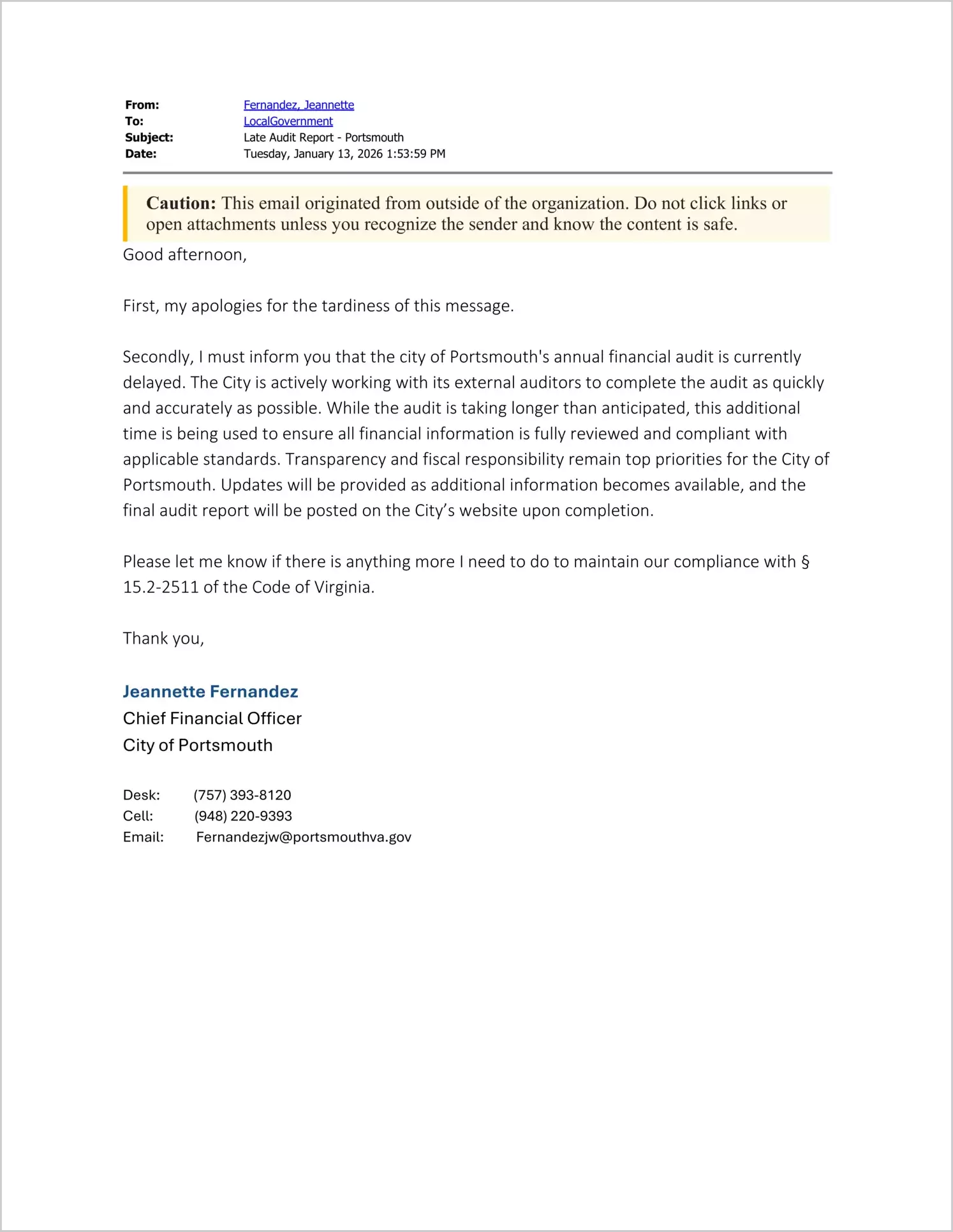2025 Annual Financial Report for City of Portsmouth - Delayed
