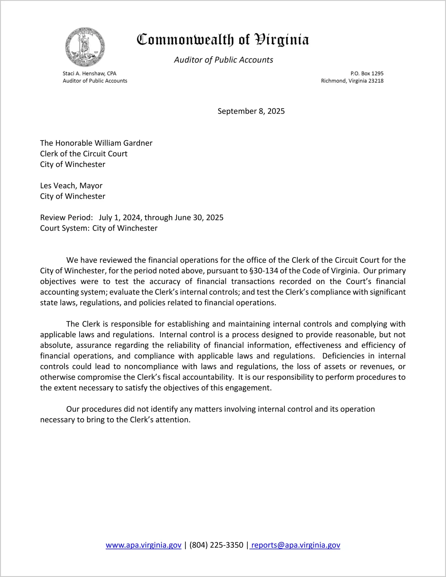Locality: City of Winchester