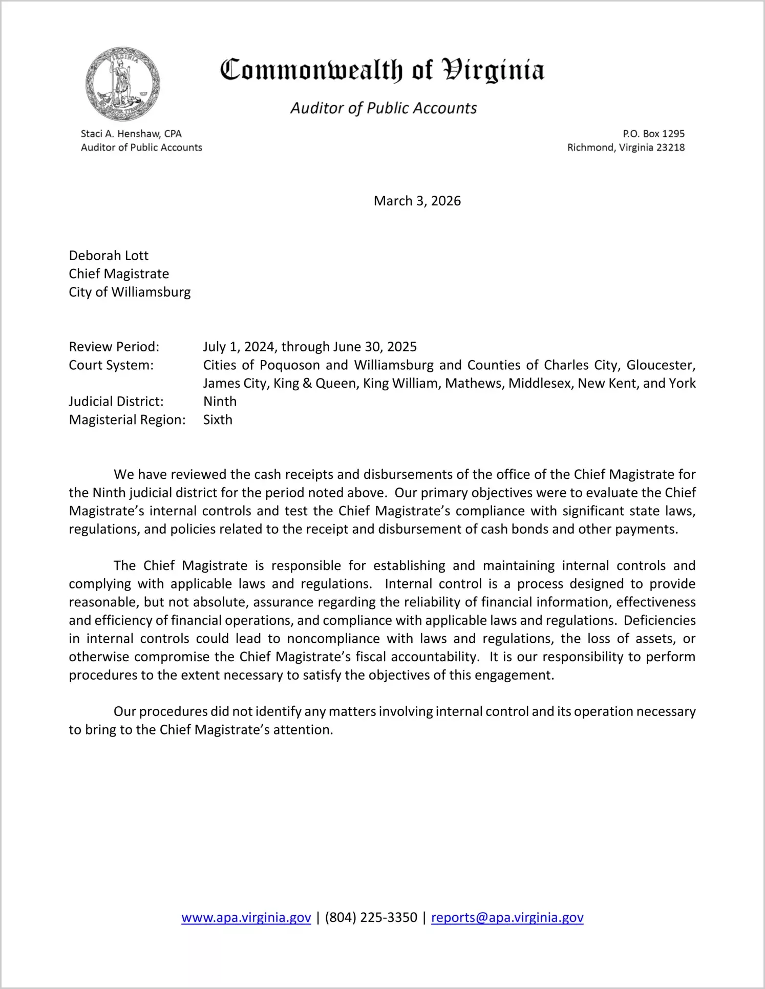 Localities: City of Poquoson, City of Williamsburg, County of Charles City, County of Gloucester, County of James City, County of King and Queen, County of King William, County of Mathews, County of Middlesex, County of New Kent, County of York