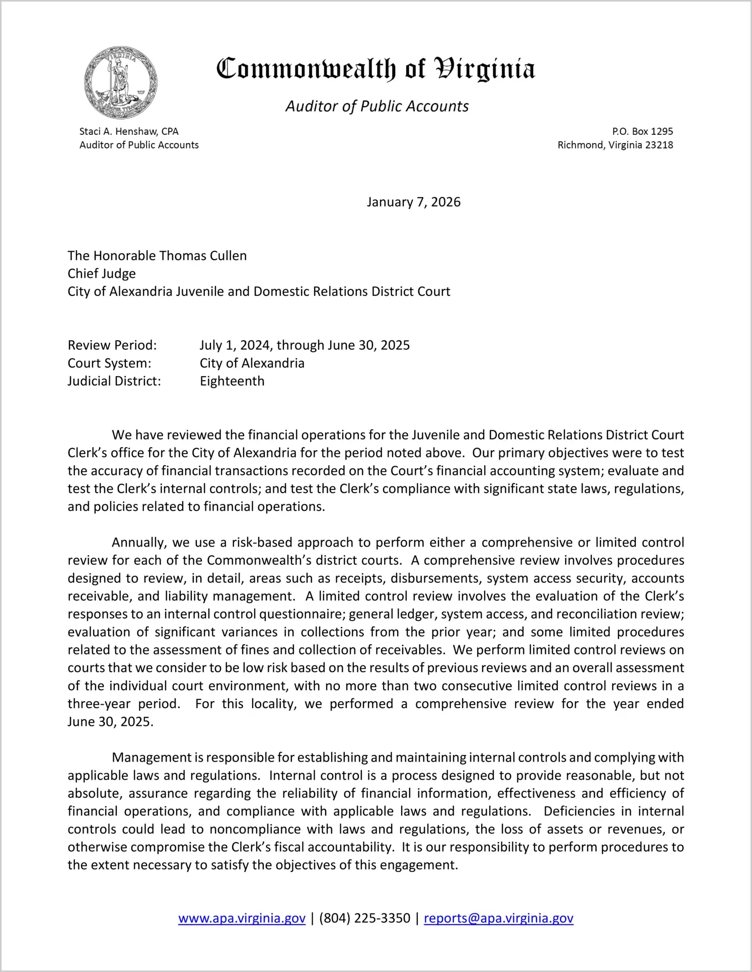 Juvenile and Domestic Relations District Court for the City of Alexandria for the period July 1, 2024 through June 30, 2025