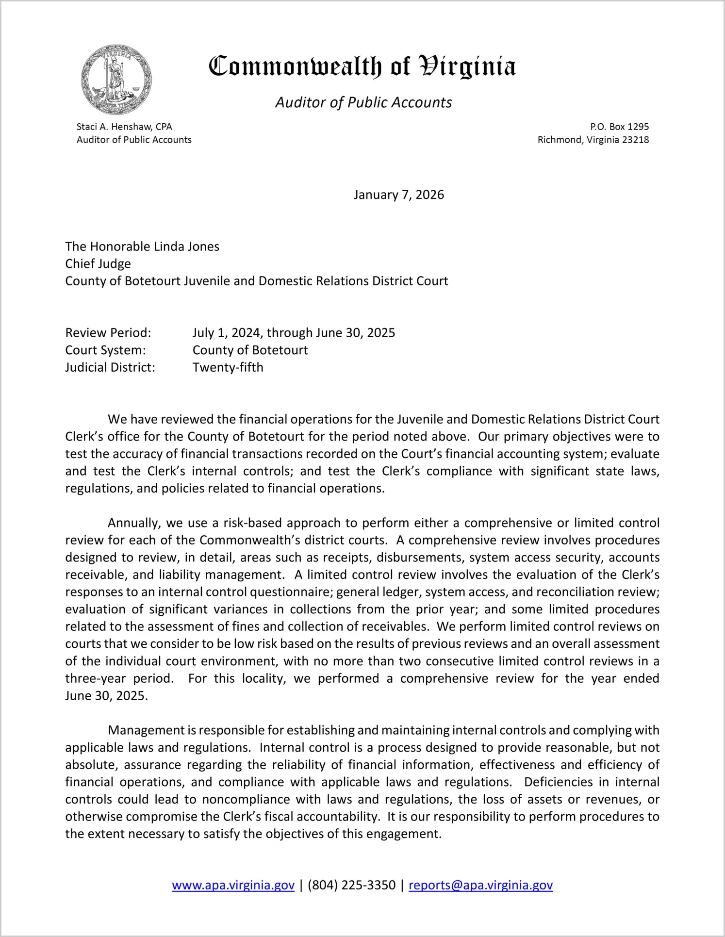 Juvenile and Domestic Relations District Court for the County of Botetourt for the period July 1, 2024 through June 30, 2026