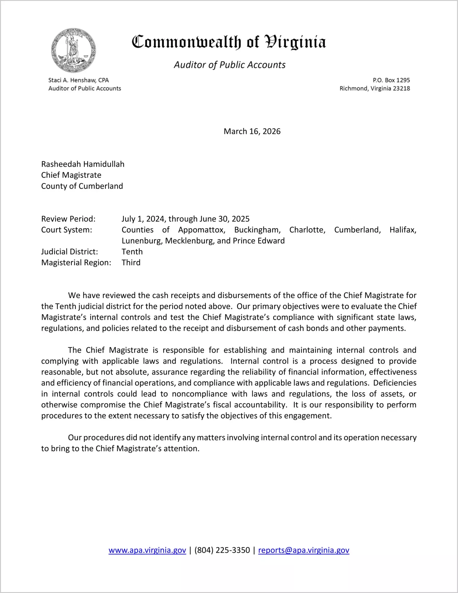 Localities: County of Appomattox, County of Buckingham, County of Charlotte, County of Cumberland, County of Halifax, County of Lunenburg, County of Mecklenburg, County of Prince Edward