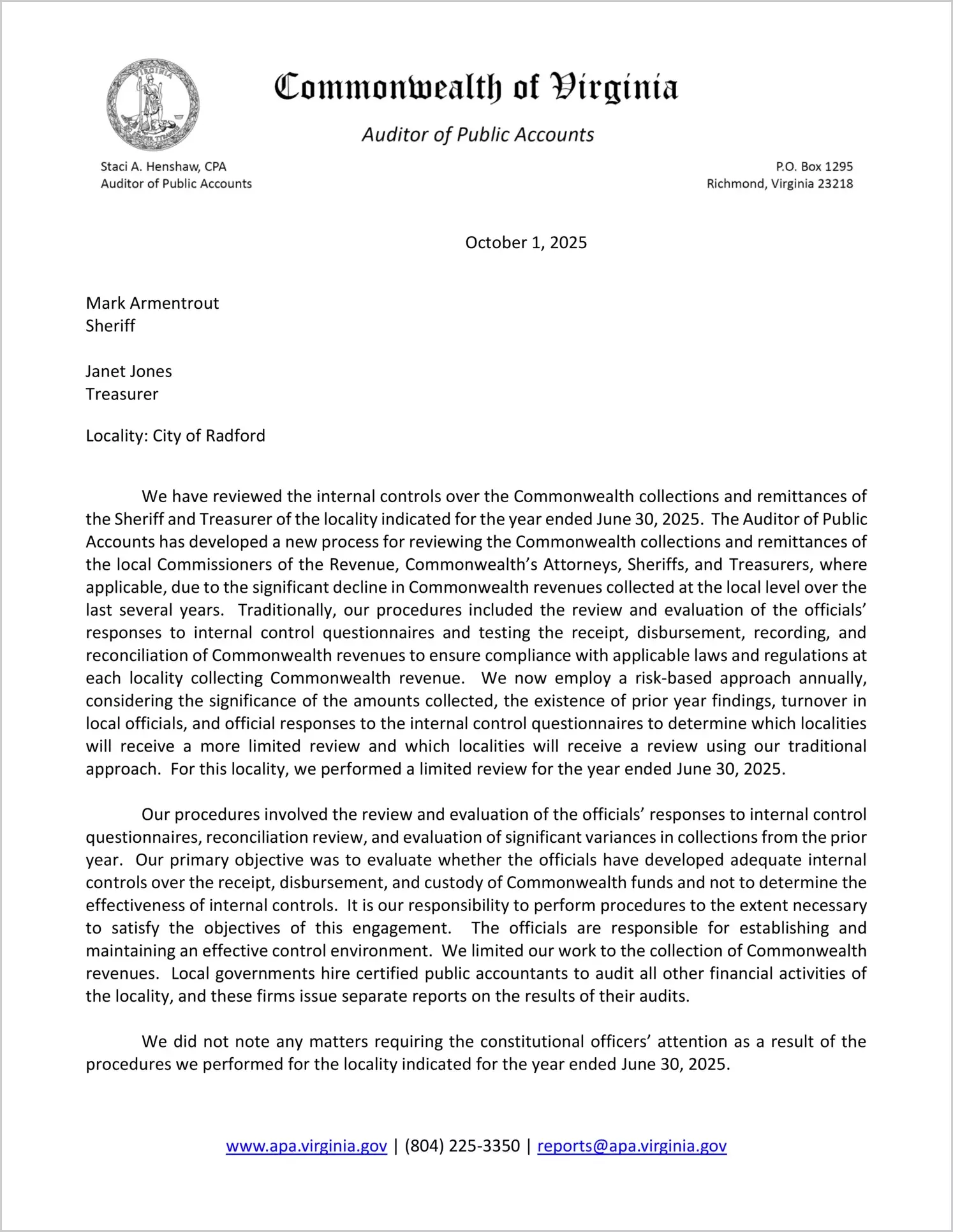 Locality: City of Radford
