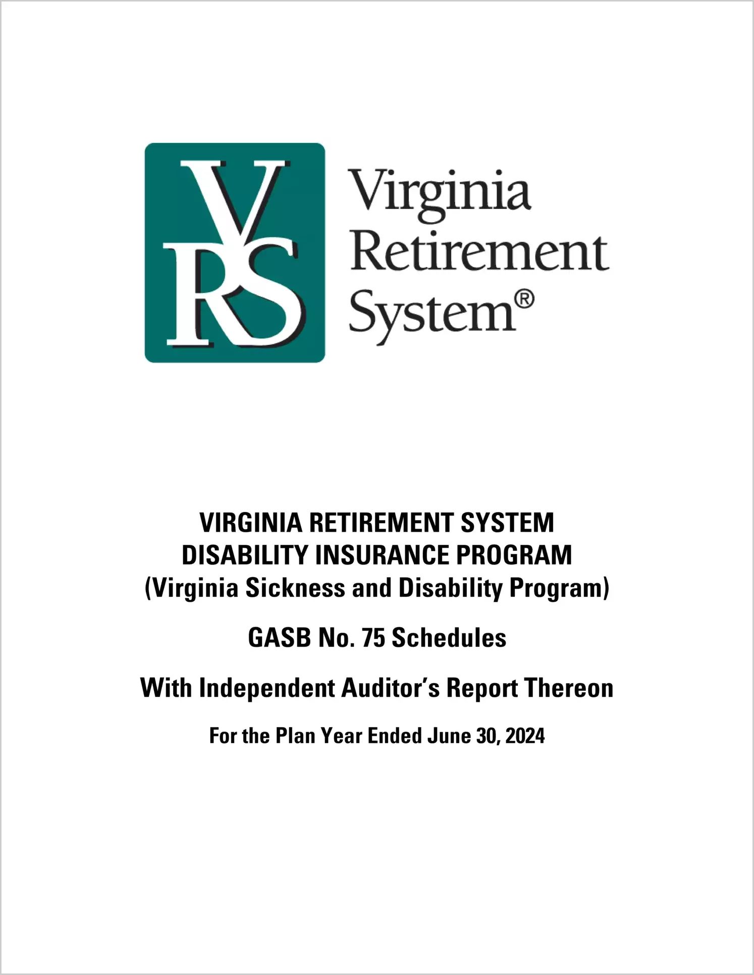 GASB 75 Schedules - Virginia Retirement System Disability Insurance Program for the plan year ended June 30, 2024