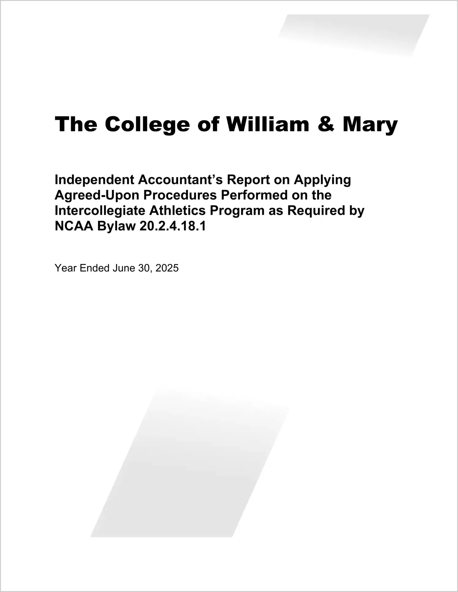 The College of William and Mary in Virginia Intercollegiate Athletics Programs for the year ended June 30, 2025